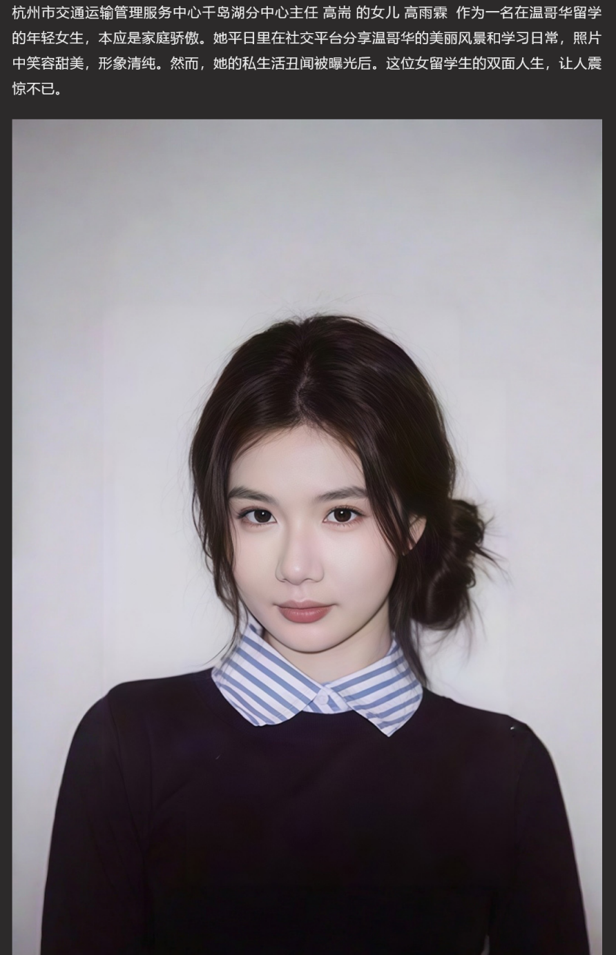 【5】❤️杭州佼通运输 千岛湖中心拄任 高耑 之女 高雨霖 温哥华留学卖淫 无套群交视频流出