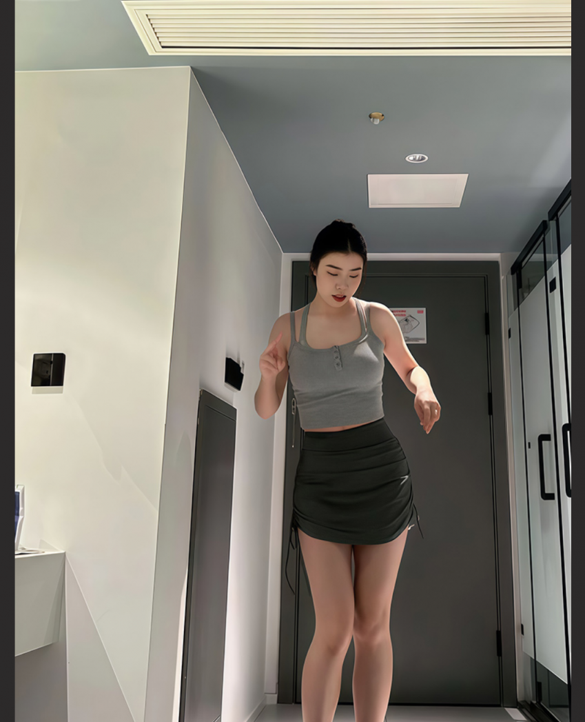 但没出来多久,她妈疯狂找她,不知道是啥缘故,我都还没要射,她说要马上回家,妈妈疯狂找她,就这样草草收场了,不过也算过意得去,不射并不代表我不行,我也得尊重一下女性,要不然下次出来可就算是强求了,强扭的瓜不甜道理大家都懂,她就脱了眼罩自己冲身体去了,我在门外拍着她,看着她的酮体,跟妹妹比的话,虽然年轻嫩一点儿,还是没有妹妹的身材好呀!