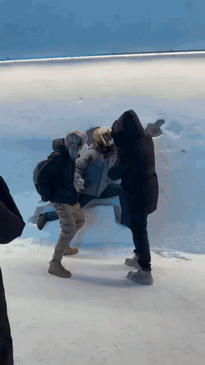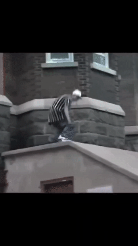 小伙子是不是太紧张了?这下糗大了,直接把房顶都撞出个窟窿