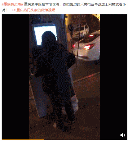 重庆渝中区技术宅乞丐,他把路边的天翼电话亭改成上网模式看小说!高手在民间呀!