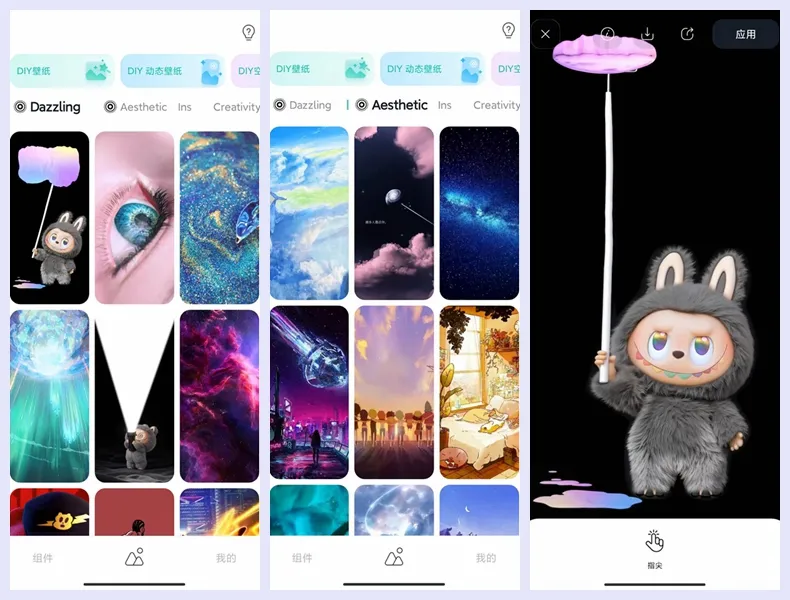 这里还可以DIY壁纸,DIY空白壁纸,DIY充电动画等,大家可以制作属于自己独有的壁纸哦。除了壁纸外,还有小组件功能,大家可以进行状态栏装饰,聊天软件背景设置等。
