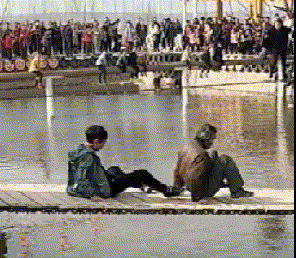 翻越护栏这种行为很不文明,希望大家不要模仿