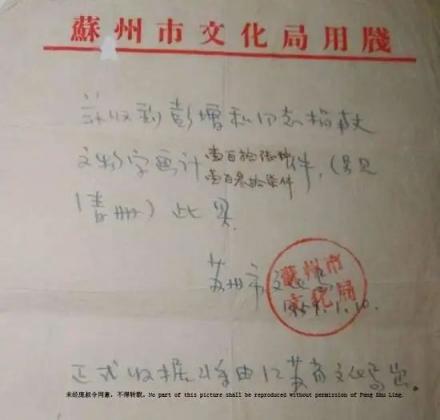 1959年,苏州市文化局代表江苏省文化局收到庞家捐赠文物字画的暂时收据。
