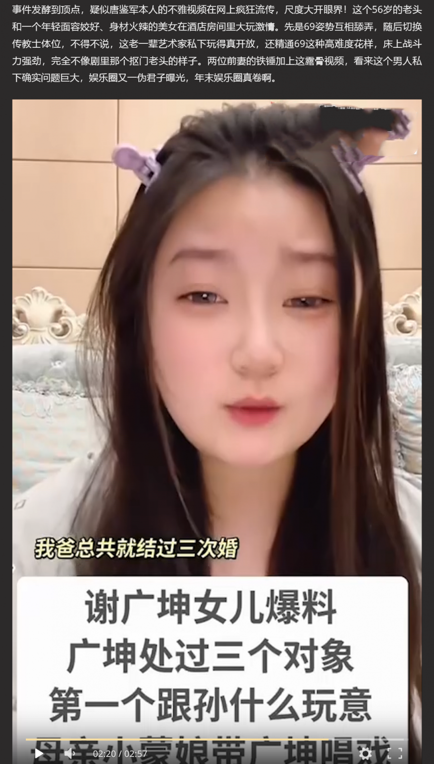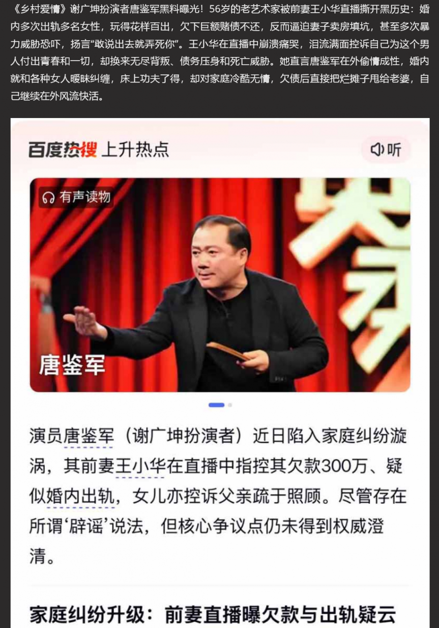 【4】☘乡村爱情 谢广坤 扮演者 唐鉴军 黑料曝光 被前妻直播间控诉出轨成性 酒店69视频被扒 渣男实锤