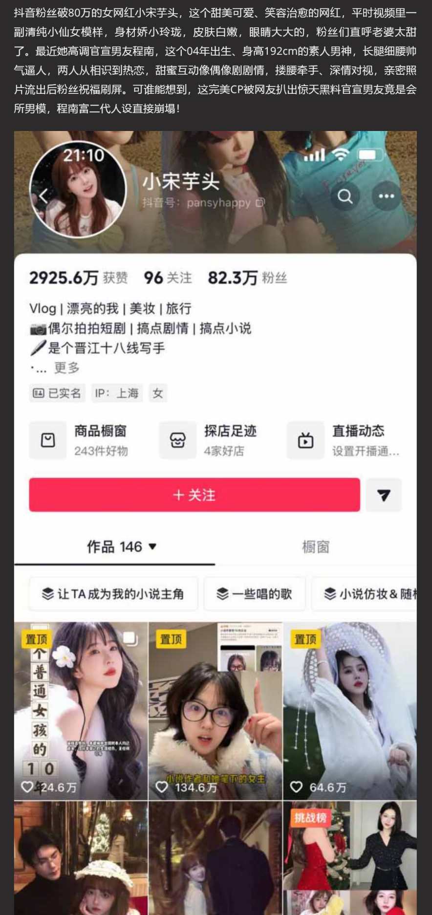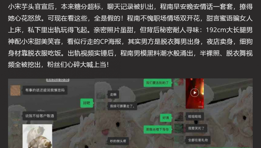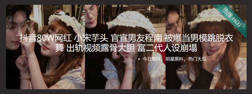 【3】✨抖音80W网红 小宋芋头 官宣男友程南 被爆当男模跳脱衣舞 出轨视频露骨大胆 富二代人设崩塌
